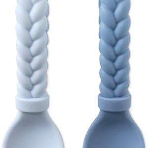 Itzy Ritzy Silicone Spoon & Fork Set; Baby Utensil Set Features A Fork and Spoon with Looped, Braided Handles; Made of 100% Food Grade Silicone & BPA-Free; Ages 6 Months and Up, Blue