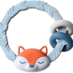 Itzy Ritzy Teether with Rattle Sound, Two Silicone Rings & Raised Texture to Soothe Gums, Ages 3 Months & Up, Fox