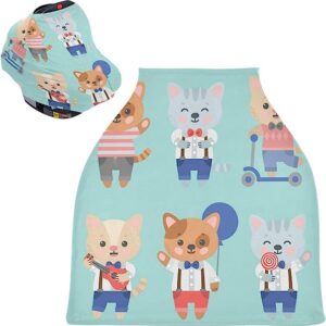 Kawaii Animals Baby Car Seat Covers – High Chair Cover Stretchy Nursing Scarf, Multi-use Carseat Canopy, for Boys and Girls Shower Gift