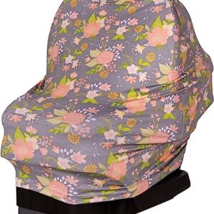 J.L. Childress 4-in-1 Multi-Use Cover – Stretchy Car Seat Canopy & Privacy Cover, Breastfeeding Nursing Cover, Shopping Cart & High Chair Cover & Soft, Breathable Blanket, Grey Floral