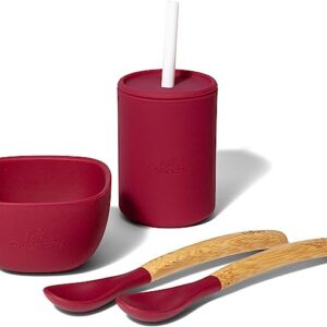Avanchy Silicone La Petite Essential Collections Gift Set Magenta – Includes Mini Silicone Bowl, Silicone Cup, and Bamboo Baby and Infant Spoons – Baby Dishes Set – Baby Shower Gifts