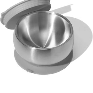 Avanchy Stainless Steel Suction Baby Bowl – Stainless Steel Kids Bowls – Suction Bowls with Lids – Suction Bowl BPA Free – Stay Put Bowl (Gray)