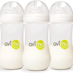 Avima 12 oz Anti Colic Infant Bottles, BPA Free, Wide Neck with Fast Flow Nipples (Set of 3)