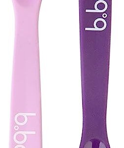 b.box Baby 2 Soft Bite Flexible Spoon Set for 9 Months + | Colors: 1 Pink-1 Purple | Includes 2 Spoons | BPA-Free | Phthalates & PVC Free | Dishwasher Safe