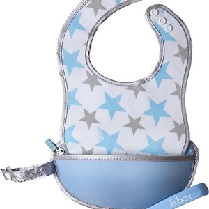 b.box Travel Bib and Flexible Soft-bite Spoon | Shining Star Pattern | Adjustable Neck Strap | BPA-Free | Phthalates & PVC Free | Easy Wipe Clean Fabric | Folds up into its own pouch