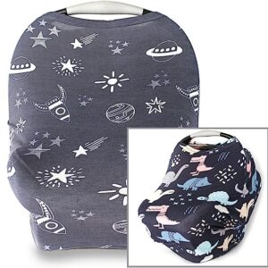 Multi Use Nursing Covers, Car Seat Canopy, Shopping Cart, High Chair, and Stroller Bundle – Rockets – Dinosaurs