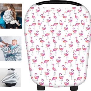 Multi-Use Flamingos Milk Yarn Nursing Breastfeeding Cover Baby Car Set Cover Canopy Shopping Cart Cover Swaddle Blanket for Infants Newborns Toddlers Shower Gift