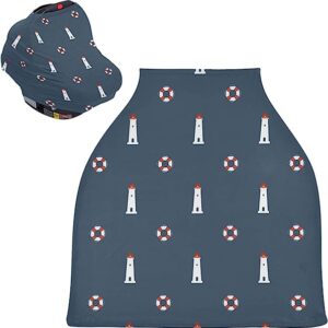Nautical Lighthouse Baby Car Seat Covers – Unisex Baby Car Seat Cover High Chair Cover Shopping Cart, Multi-use Carseat Canopy, for Moms and Babyies