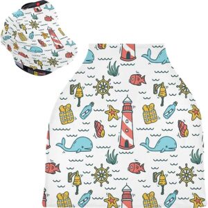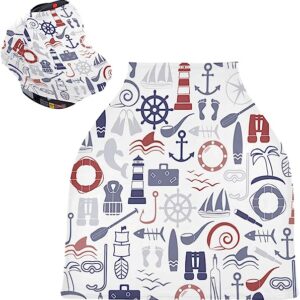 Nautical Baby Car Seat Covers – High Chair Cover Stretchy Nursing Scarf, Multi-use Carseat Canopy, for Newborns
