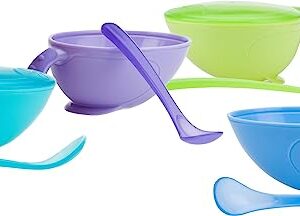 Nuby, Non-Skid Comfort Grip Baby Food Plastic Feeding Bowl with Lid and Spoon, Colors May Vary