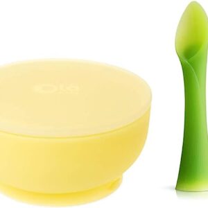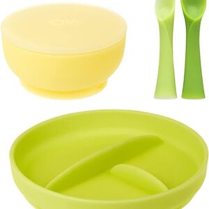 Olababy 100% Silicone Soft-Tip Training Spoon and Suction Bowl with Lid Bundle