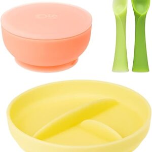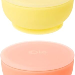 Olababy 100% Silicone Suction Bowl with Lid Bundle for Independent Feeding Baby and Toddler (Lemon + Coral)