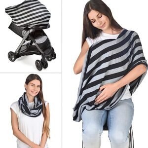 Nursing Scarf Breastfeeding Cover Stylish ? Car Seat Cover Canopy, Stroller, Multi-Use Stretchy Breathable Lightweight Shawl for Girls and Boys (Black Grey Stripe)