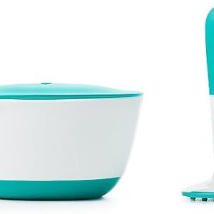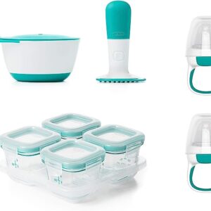 OXO Tot 2 Ounce Baby Blocks Food Storage Containers, Teal & Infant Feeding Spoon with Travel Case- Teal