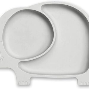 Sage Spoonfuls 100% Silicone Divided Toddler Plate – 1 Elephant Suction Plate for Babies, Toddlers and Big Kids – Dishwasher and Microwave-Safe – BPA, Phthalate, PVC, Lead, BPS, and Latex-Free – Gray