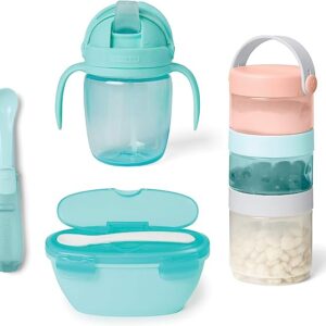 Skip Hop Baby Feeding Travel Set, Easy-Pack Baby Shower Gift Set, 6pc, Soft Teal