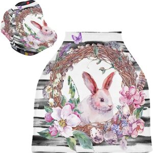 Spring Happy Easter Wreath with Bunny Eggs Baby Car Seat Covers – Stroller Canopy High Chair Cover, Multi-use Carseat Canopy, for Baby Boys and Baby Girls Shower Gift