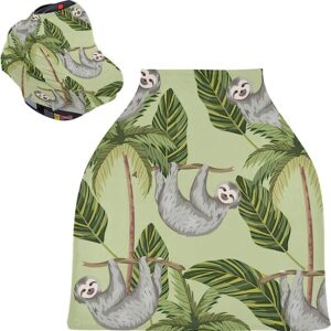 Sloth Tropical Palm Leaves Baby Car Seat Covers – High Chair Cover Stretchy Nursing Scarf, Multi-use Carseat Canopy, for Baby Boys and Baby Girls Shower Gift