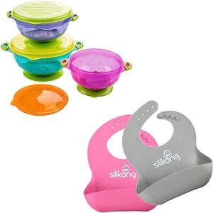 Suction Bowls Set + Pocket Bibs Set (2 Pack)