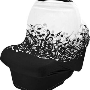 Stretchy Baby Car Seat Covers for Boys Girls Music Notes Infant Car Canopy Nursing Cover Breastfeeding Scarf