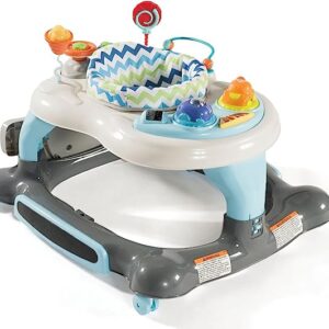 Storkcraft 3-in-1 Activity Walker and Rocker with Jumping Board and Feeding Tray, Interactive Walker with Toy Tray and Jumping Board for Toddlers and Infants, Blue/Gray