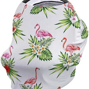 Tropical Baby Car Seat Covers, Nursing Cover Breastfeeding Scarf/Shawl, Infant Carseat Canopy, Stretchy Soft Breathable Multi-use Cover Ups, Animal Flamingo Flower Summer