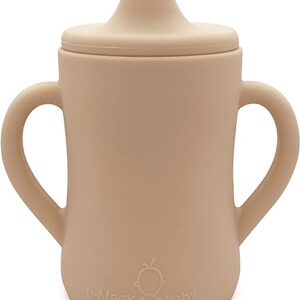 U-Neek baby Silicone Sippy Cup for Baby 6 Months+ | Two Handle Learner Cup for Toddlers | Transitional Training Cup for Baby Led Weaning and Independent Drinking 6.7oz | Baby Gift (Peach/Creme)