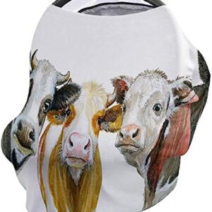 Watercolor Farmhouse Animals Baby Nursing Cover for Breastfeeding, Breathable Stretchy Nursing Scarf Carseat Canopy for Boys or Girls Stroller Car Seat Covers Art Print Cow