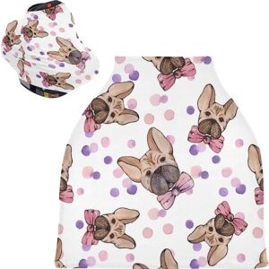 Watercolor Cute Dogs Wearing Bowknot Baby Car Seat Covers – Stroller Canopy High Chair Cover, Multi-use Carseat Canopy, for Boys and Girls Shower Gift
