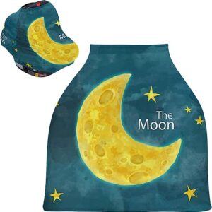 Watercolor Moon Stars Baby Car Seat Covers – Unisex Baby Car Seat Cover High Chair Cover Shopping Cart, Multi-use Carseat Canopy, for Babies and Breastfeeding Mothers