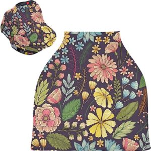 Watercolor Flower Leaves Baby Car Seat Covers – Unisex Baby Car Seat Cover High Chair Cover Shopping Cart, Multi-use Carseat Canopy, for Boys and Girls Shower Gift