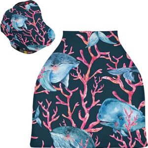 Watercolor Blue Whale Baby Car Seat Covers – Stroller Cover High Chair Cover, Multi-use Carseat Canopy, for Babies and Breastfeeding Mothers