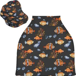 Watercolor Clown Fishes Baby Car Seat Covers – Stroller Canopy High Chair Cover, Multi-use Carseat Canopy, for Boy&Girl