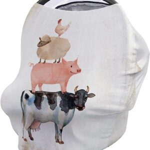 Watercolor Chic Cow Pig Sheep and Chicken Baby Nursing Cover for Breastfeeding, Breathable Stretchy Nursing Scarf Carseat Canopy for Boys or Girls Stroller Car Seat Covers Farm Animals