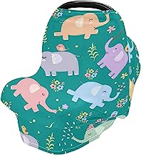 Elephant Flowers Baby Car Seat Covers Canopy Nursing Cover Breastfeeding Scarf Soft Breathable Stretchy Coverage Infant Stroller Cover Multi Use for Boys Girls Babies