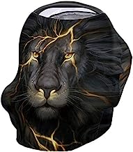 Anoreya Lion Car?Seat?Canopy?Cover,?26×27.6?inch?Nursing?Covers,?Stretchy?Healthy?Fabric?for?Infant?Stroller?Shopping?Cart?Decoration, Solemn Lion King of Beasts Animal Black Gold