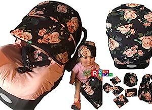 9pc Baby Boy Baby Girl Ultimate Set of Infant Car Seat Cover Canopy Headrest Blanket Hat Nursing Scarf, 06JE01