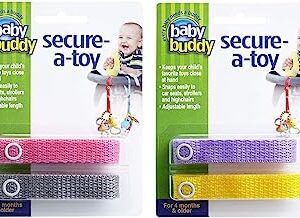Baby Buddy Secure-A-Toy, Safety Strap Secures Toys, Teether, or Pacifiers to Strollers, Highchairs, Car Seats? Keep Toys Sanitary Clean, 4 Count, Girls Colors (Colors May Vary)