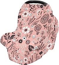 Floral On Pink Baby Car Seat Covers Canopy Nursing Cover Breastfeeding Scarf Soft Breathable Stretchy Coverage Infant Stroller Cover Multi Use for Boys Girls Babies