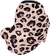 Pink Black Leopard Baby Car Seat Covers, Nursing Cover Breastfeeding Scarf Soft Breathable Stretchy Coverage, Infant Stroller Cover for Boys Girls