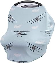 Car Seat Canopy Nursy Cover Airplane, Multi Use Breastfeeding Scarf for Infant Carseat Canopy Stroller Shopping Cart Highchair Old Aircraft Biplanes in Blue Sky Speedy Propellers Wings Retro Design