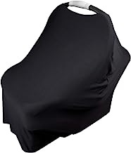 Car Seat Nursing Breastfeeding Cover Premium Bamboo Carseat Canopy Cover, Multi-use Stroller Cover 6 in 1- Black for Baby boy or Girl