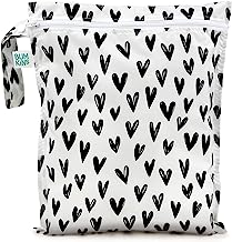 Bumkins Waterproof Wet Bag, Washable, Reusable for Travel, Beach, Pool, Stroller, Diapers, Dirty Gym Clothes, Wet Swimsuits, Toiletries, 12×14 ? Black Hearts