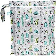 Bumkins Waterproof Wet Bag, Washable, Reusable for Travel, Beach, Pool, Stroller, Diapers, Dirty Gym Clothes, Wet Swimsuits, Toiletries, 12×14 ? Cactus