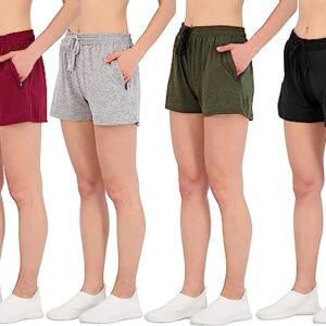 4 Pack: Womens Active Athletic Performance Dry-Fit Shorts with Zipper Pockets