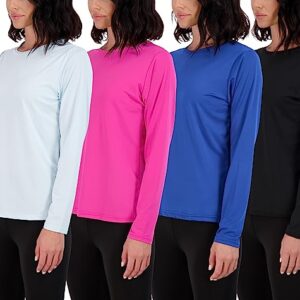 4 Pack: Women’s Dry-Fit Tech Stretch Long-Sleeve Athletic Workout T-Shirt (Available in Plus Size)