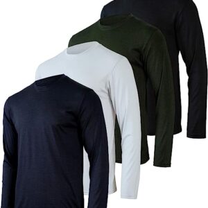 4 Pack: Men’s Dry-Fit Moisture Wicking Performance Long Sleeve T-Shirt, UV Sun Protection Outdoor Active Athletic Crew Top
