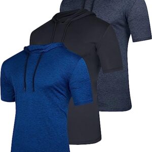 3 Pack: Mens Dry Fit Moisture Wicking Short Sleeve Active Athletic Hoodie Pullover Sweatshirt