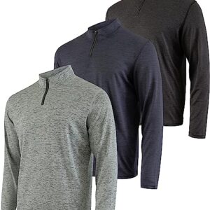 3 Pack: Men’s Active Dry-Fit Quarter Zip Long Sleeve Outdoor Athletic Performance Pullover