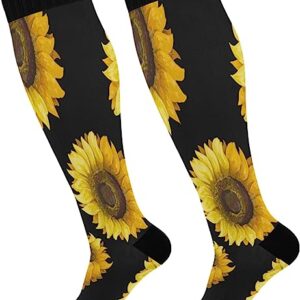 Black Fashion Socks for Women and Men Sport Knee High Compression Socks Support for Running Hiking Fitness Multi-angle Sunflower